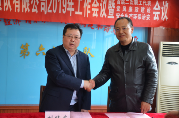 會上,劉曉東與公司所屬各單位(部門)簽訂了《2019年黨風(fēng)廉政建設(shè)責(zé)任書》和《2019年安全生產(chǎn)與治安保衛(wèi)工作目標(biāo)責(zé)任書》,王和平與公司各經(jīng)營單位負(fù)責(zé)人簽訂了《2019年經(jīng)營目標(biāo)責(zé)任書》。