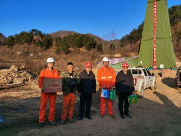 12月1日,公司黨委書記、執(zhí)行董事劉曉東一行前往我公司小秦嶺國家級整裝勘查區(qū)綜合物探科研第一鉆施工地,慰問為該項目施工的山東省地礦局第三地質隊礦產(chǎn)勘察院(以下簡稱山東三院)施工人員。并送去了生活慰問品。公司黨委副書記、總經(jīng)理王和平、總經(jīng)理助力王倉武、以及有關部門負責人陪同慰問。
