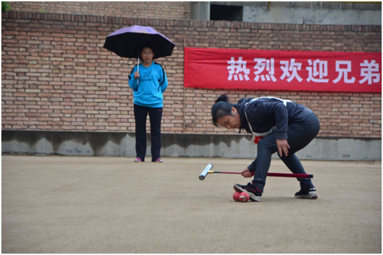 門球場上,隊員們個個精神煥發,手握重槌,氣定神閑,揮桿對壘沉著冷靜,彎腰擊球也顯得身手矯健,擊球力度和角度都控制得非常精準,毫不遜色于年輕人。“過門”、“撞擊”、“閃擊”,充分展現了“壯心未與年俱老”的“夕陽紅”活力。